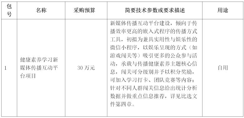 中国健康教育中心就“健康素养学习新媒体传播互动平台项目”进行比选采购,现邀请合格供应商参加比选响应。