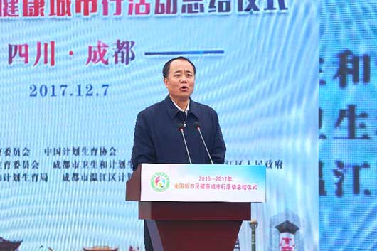 12月7日上午,在四川省成都市温江区,国家卫生计生委、中国计生协联合举行了2016—2017年全国新市民健康城市行活动总结仪式,国家卫生计生委副主任、中国计生协党组书记、常务副会长王培安同志出席活动并讲话,成都市、温江区党委、政府负责同志参加活动。